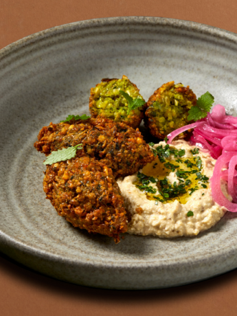 Falafel med syltede rødløg og baba ganoush