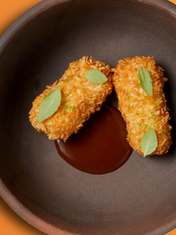 Friterede bananer med kokos, lime og karamelsauce