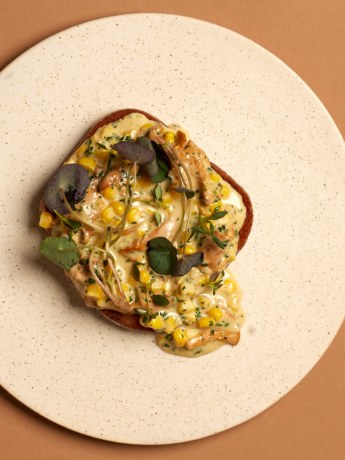 Svampetoast med kantareller, majs og timian